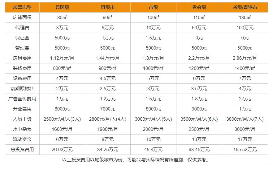 从上表中可以看到,自然稻米线加盟费分别是县区级需要26.03万元、县级市需要34.25万元、市级需要45.8万元、省会级需要93.45万元、省级和直辖市需要155.52万元。yP537招商网平台